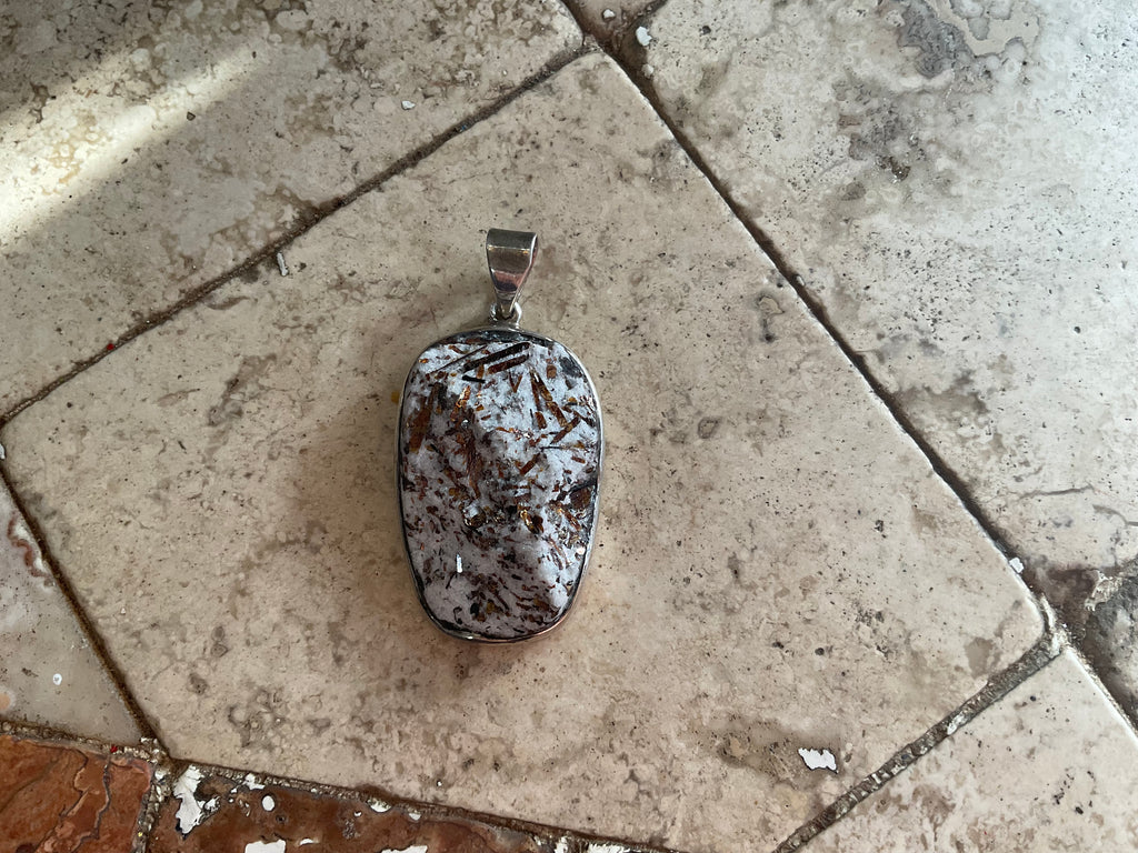 Crafted with expert precision and stunning in its simplicity, our Magnificent Astrophylitte Pendant is a must-have for any jewelry collection. Made of high-quality sterling silver, this pendant showcases the rare and unique astrophylitte stone, reflecting its natural beauty. Elevate any outfit with this exquisite piece of art.