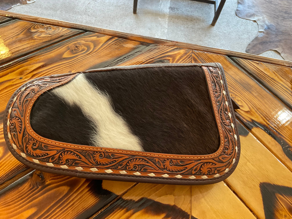 This 11” pistol case is perfect for protecting your firearms with its elegant design, leather material, and pretty cowhide stamping. The zippered closure ensures secure storage, while the combination of leather and cowhide offers a stylish and unique look. Keep your pistol safe and stylish with this high-quality case.